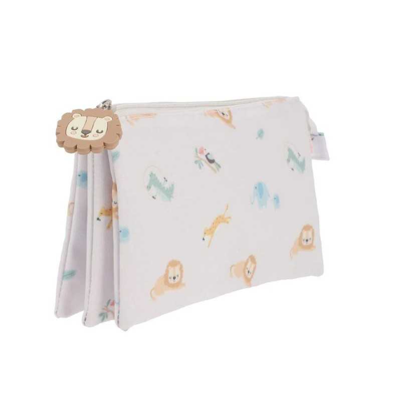 Astuccio a tre tasche per mettere in modo ordinato e ben separato tutto il materiale scolastico. E' delizioso con il suo tiretto decorativo con un dettaglio che distingue ogni collezione.Plastica riciclata delle bottiglie (rPET)