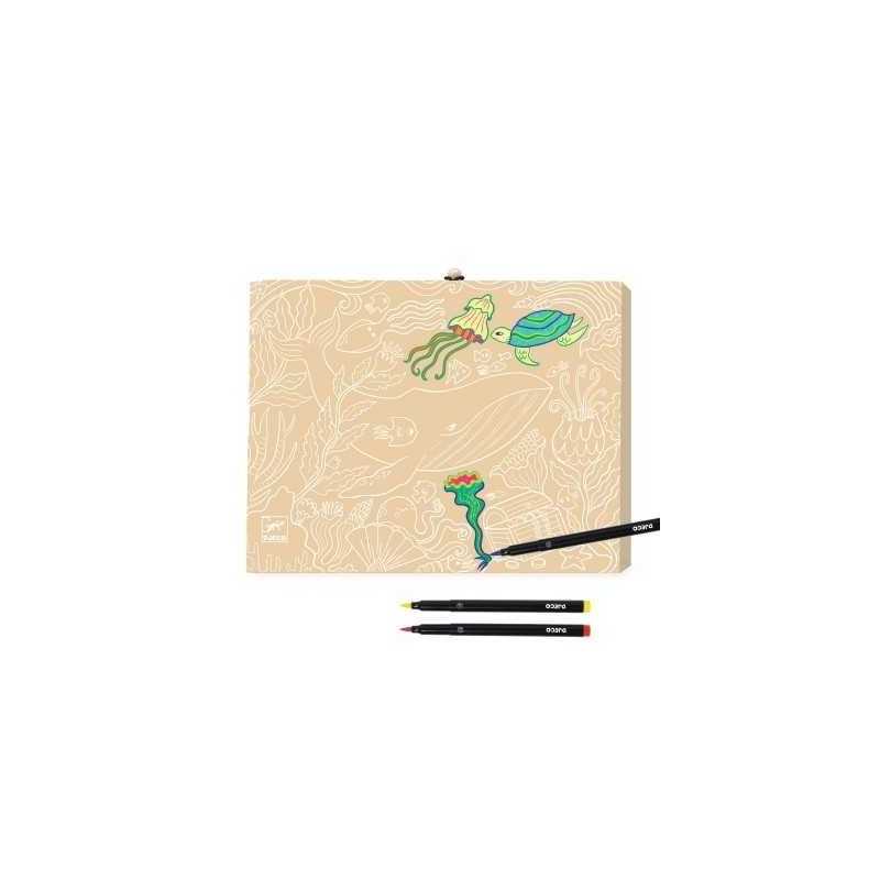 Set con 24 pezzi (pennarelli) SCATOLA DEI COLORI (con valigetta da colorare), di Djeco.