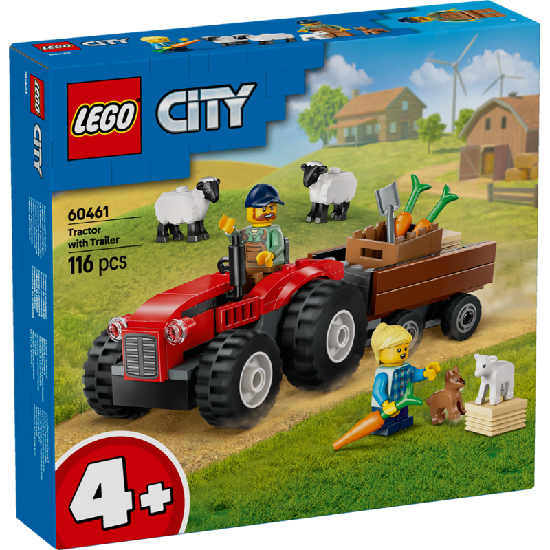 Aggancia il rimorchio e carica le balle di fieno, il cesto di carote e il simpatico cucciolo, quindi salta a bordo del trattore rosso e dirigiti verso i campi. Il terreno accidentato non è un problema per questi enormi pneumatici! Dai da mangiare del fieno alle pecore e controlla l’agnellino. Buon divertimento in fattoria!