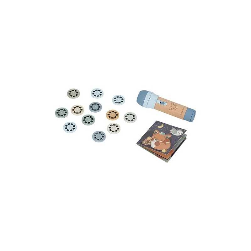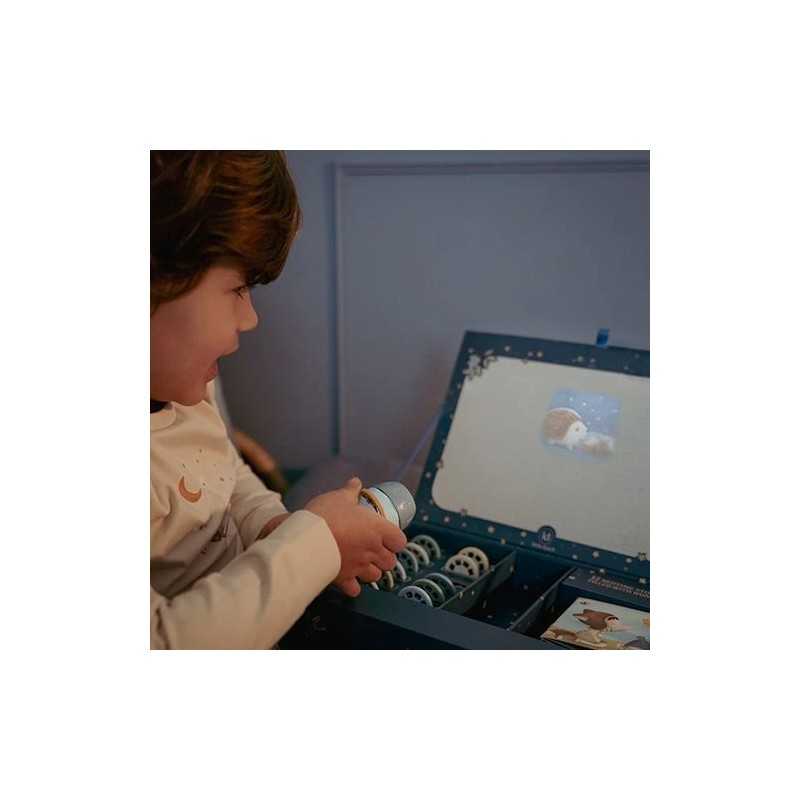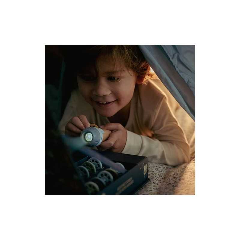 La torcia elettrica con proiettore ha una robusta impugnatura in legno e funziona a batterie, così può andare ovunque. Dopo la storia puoi riporre facilmente la torcia elettrica e tutti gli accessori nella bellissima scatola portaoggetti. Perfetta per i bambini che amano scoprire e vivere storie.