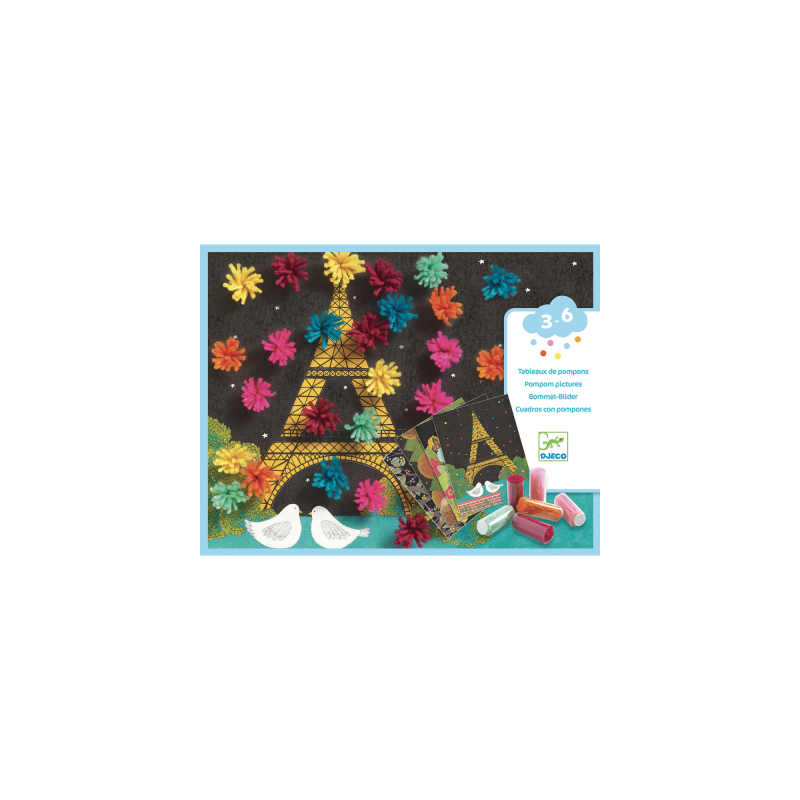 Kit artistico QUADRI CON POMPON - ESPLOSIONE DI POMPON, di Djeco.