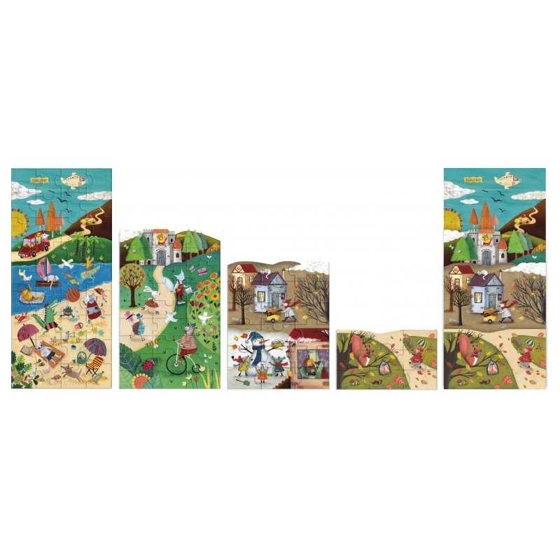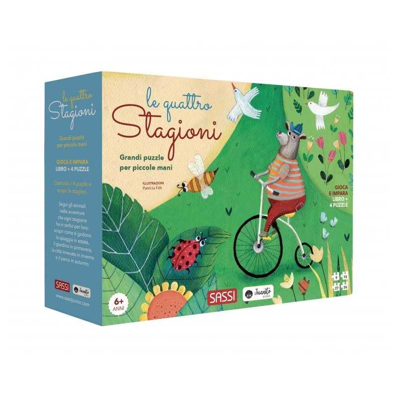 4 puzzle da costruire e sovrapporre e un libro di 24 pagine dedicato alle quattro stagioni.