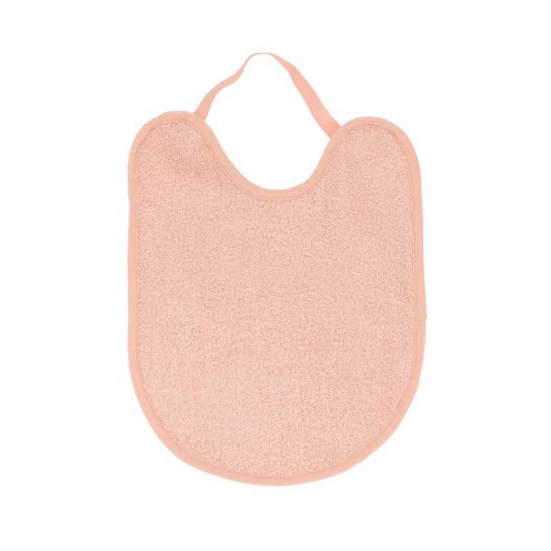Classico bavaglio di spugna, ampio, con elastico al collo, con rivestimento posteriore impermeabile per non bagnare i vestiti.