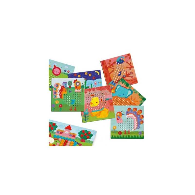 Un gioco classico dove i chiodiniin plastica di varie forme rappresentano le tessere. I bimbi, sviluppando le loro capacità creative, riprodurranno 8 diversi animali grazie alle plance intercambiabili, da incastrare sulla base in legno. La confezione contiene 170 chiodini, 8 card illustrate ed una base. Misura circa 21 x 21 x 5 cm. Da 4 anni in su.
