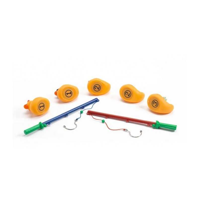 Contenuto della confezione: 5 papere di plastica e 2 canne da pesca per giocare con gli amici.