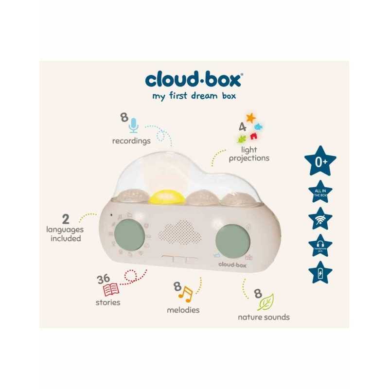 cloud.box™ racconta 36 storie divertenti basate su 9 personaggi con personalità molto diverse. Con gli incantevoli universi da esplorare – Oceano, Foresta, Spazio e Villaggio – CloudBox™ aiuta a calmare i neonati e immerge i bambini in mondi magici che aiutano a sviluppare la loro immaginazione.