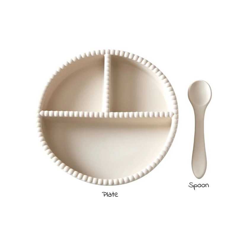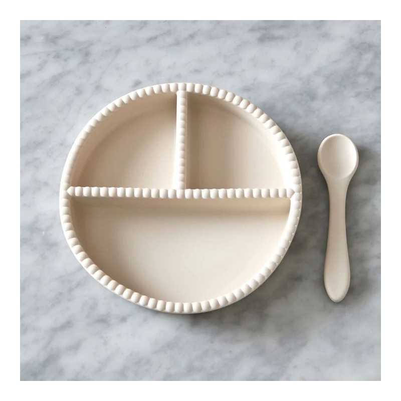 Il set è composto da un piatto con divisori per i più piccoli e un cucchiaio. Il piatto in silicone è dotato di una base a ventosa che aderisce alle superfici lisce per ridurre al minimo le fuoriuscite e aiutare i più piccoli a imparare a mangiare da soli. Realizzate in silicone alimentare, le stoviglie resistono alle alte temperature e sono adatte al microonde e alla lavastoviglie. In genere, è sufficiente una rapida passata di acqua calda per la pulizia.